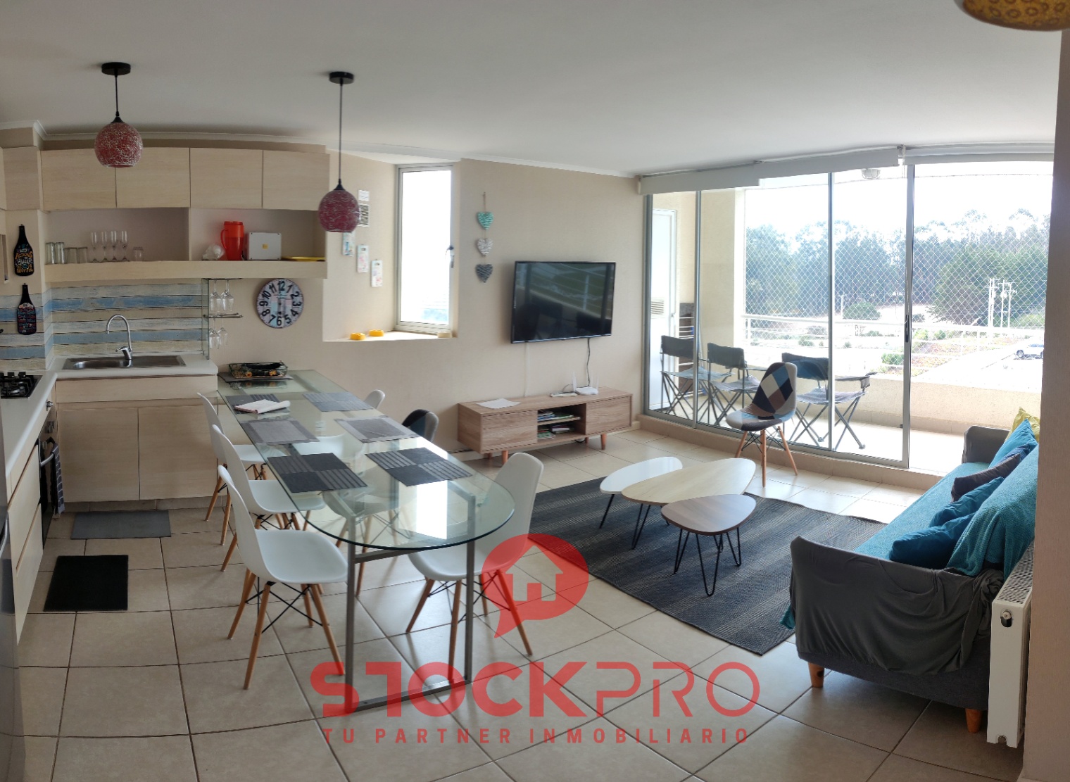 En el exclusivo Condominio Laguna Bahía, ubicado en Algarrobo Norte, se encuentra este atractivo departamento en arriendo. Con un valor de CL$650.000, este inmueble ofrece una excelente oportunidad de vivir en un entorno seguro y rodeado de naturaleza. La propiedad cuenta con dos cómodos baños, una cocina bien equipada, y un balcón que permite disfrutar de las vistas y el aire fresco. Además, dispone de un estacionamiento cubierto, asegurando la protección de su vehículo frente a las inclemencias del tiempo.