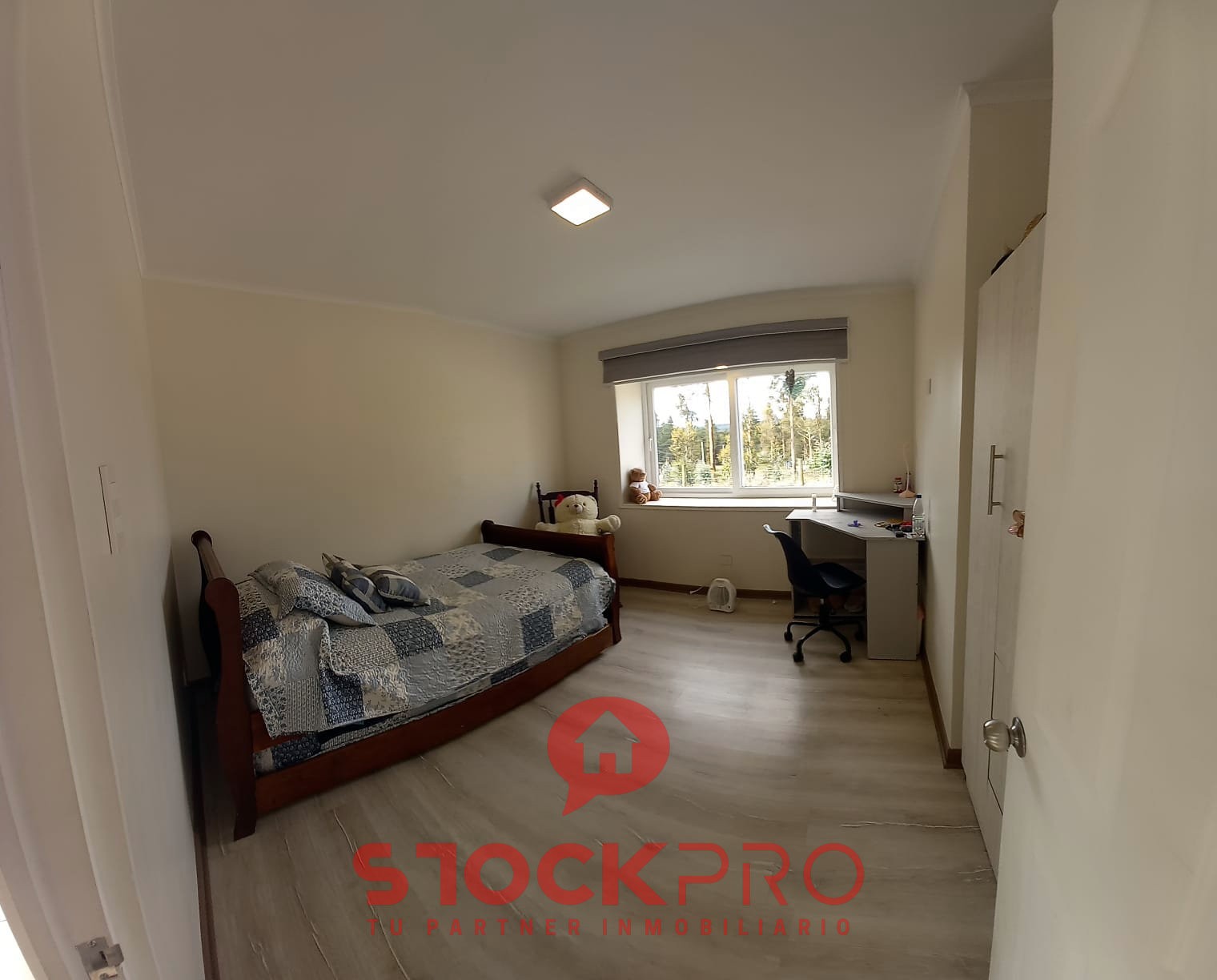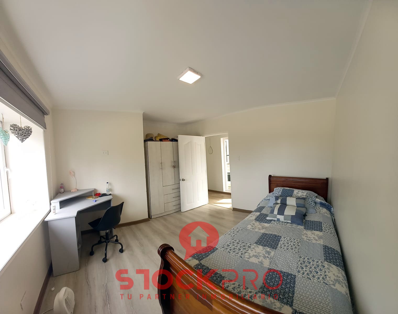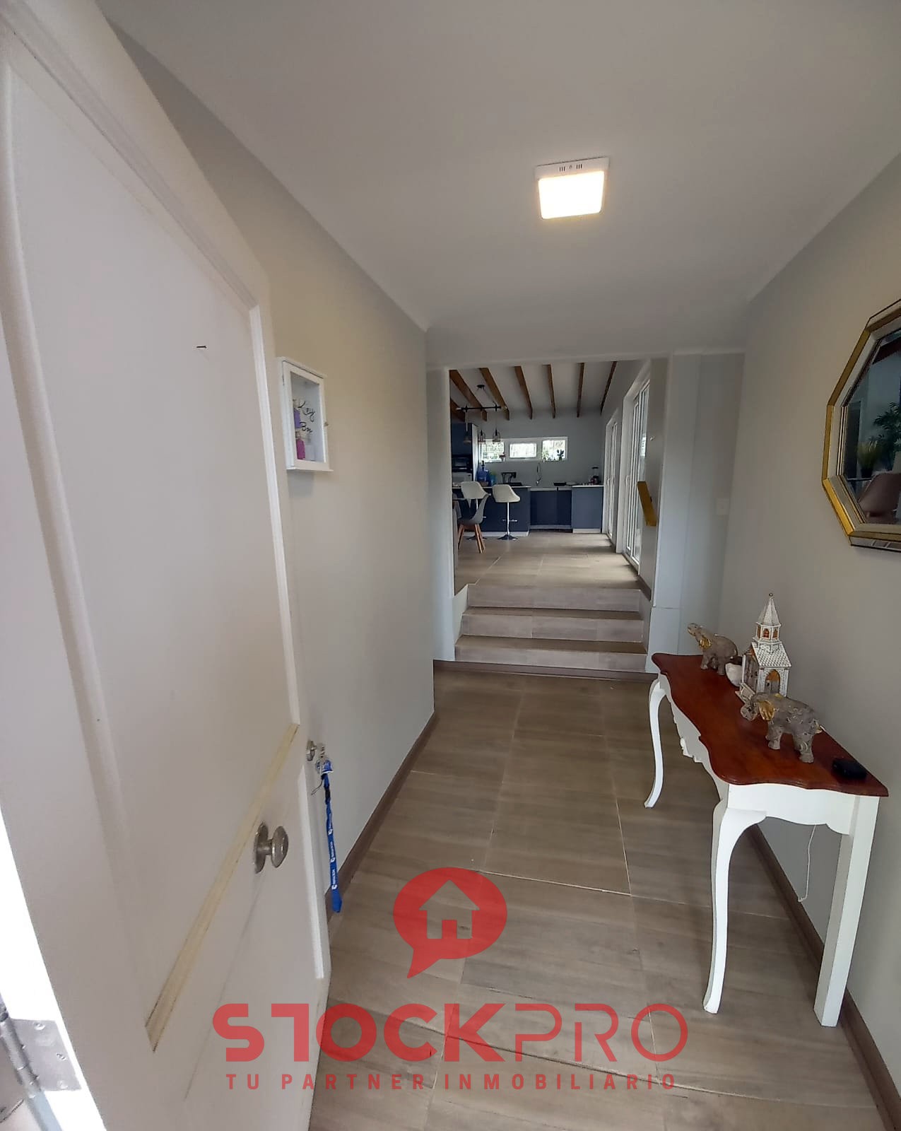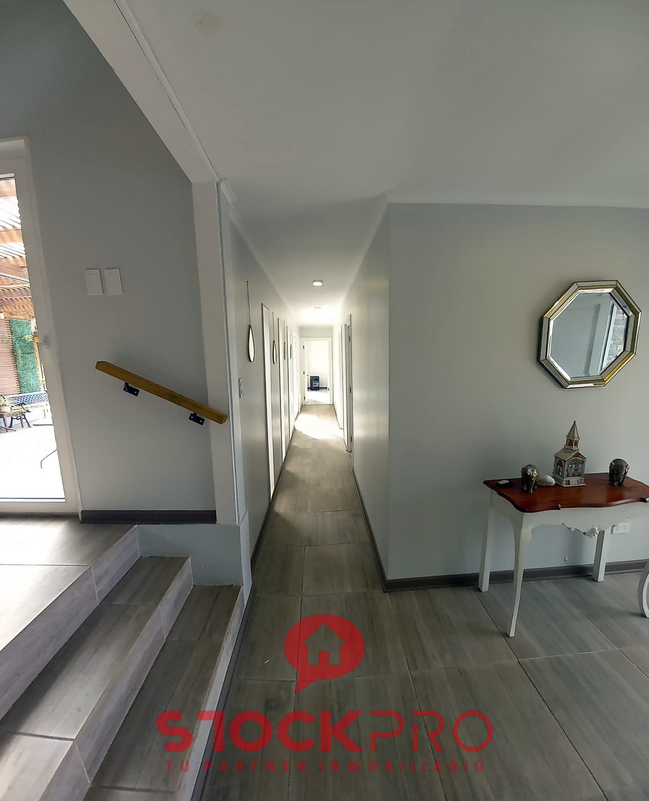 La casa dispone de 4 dormitorios más dos baños, principal en suite con walk in closet, dormitorios secundarios complementados con amplios closets que optimizan el espacio de almacenamiento. El exterior se destaca por un amplio jardín y patio que incluye una amplia terraza techada con quincho, perfecto para disfrutar de reuniones al aire libre. El condominio ofrece seguridad y áreas verdes, así como una cancha polideportiva que fomenta un estilo de vida activo. Además, la propiedad cuenta con servicios como agua corriente, luz, y aire acondicionado, garantizando comodidad durante todo el año.