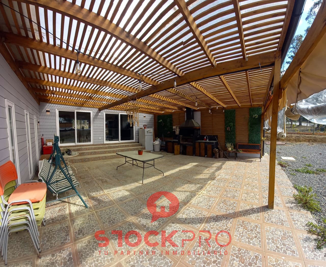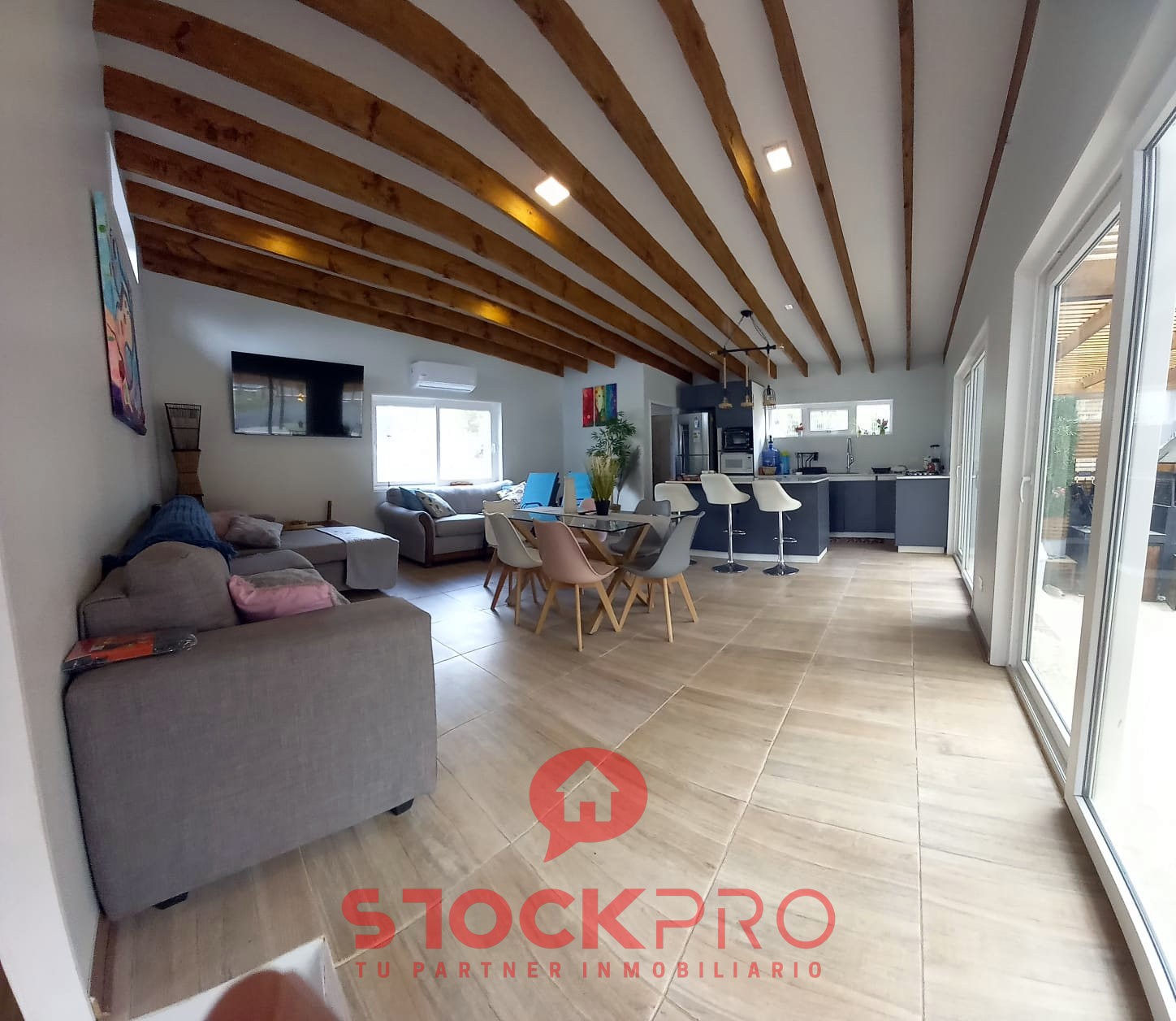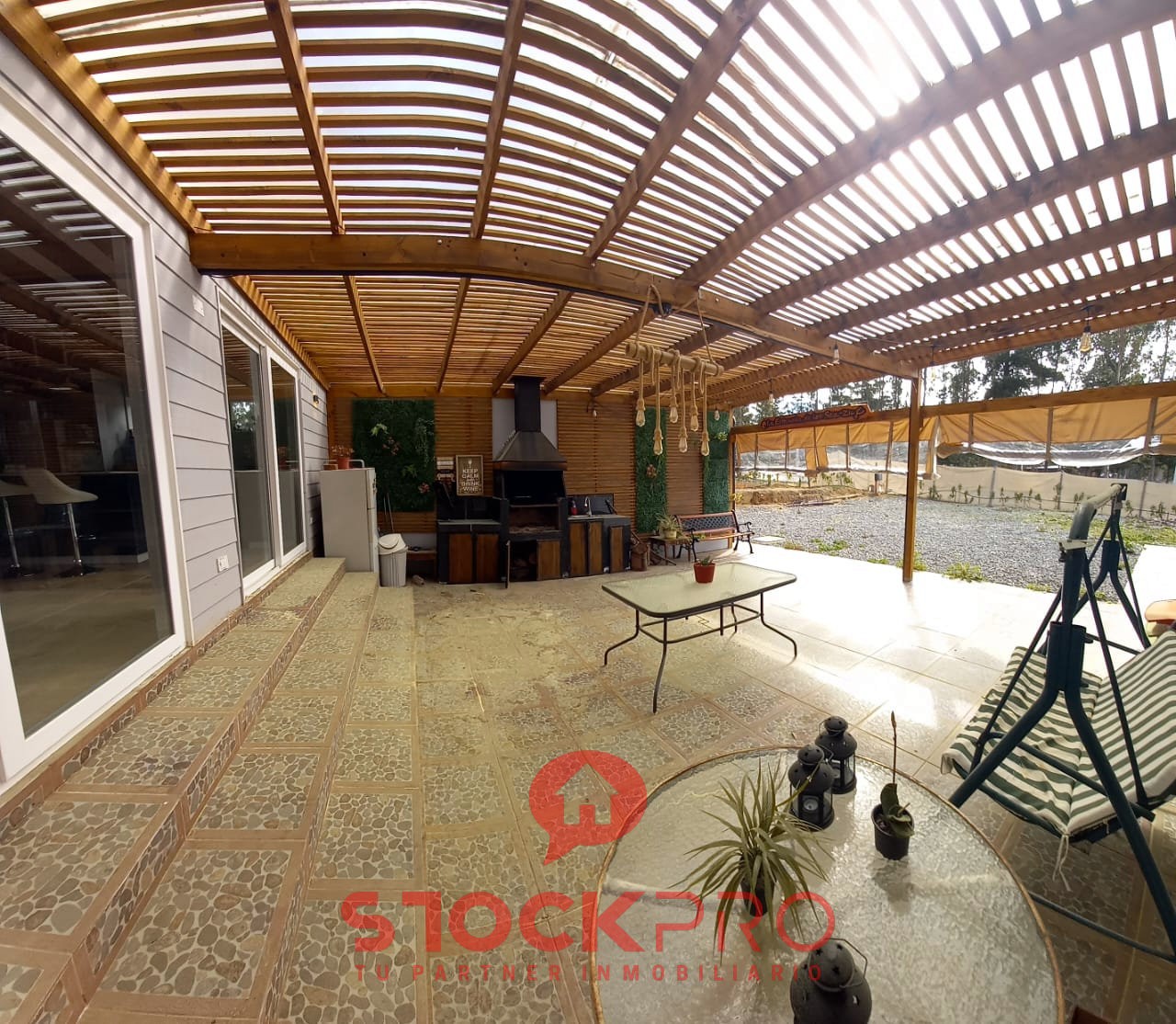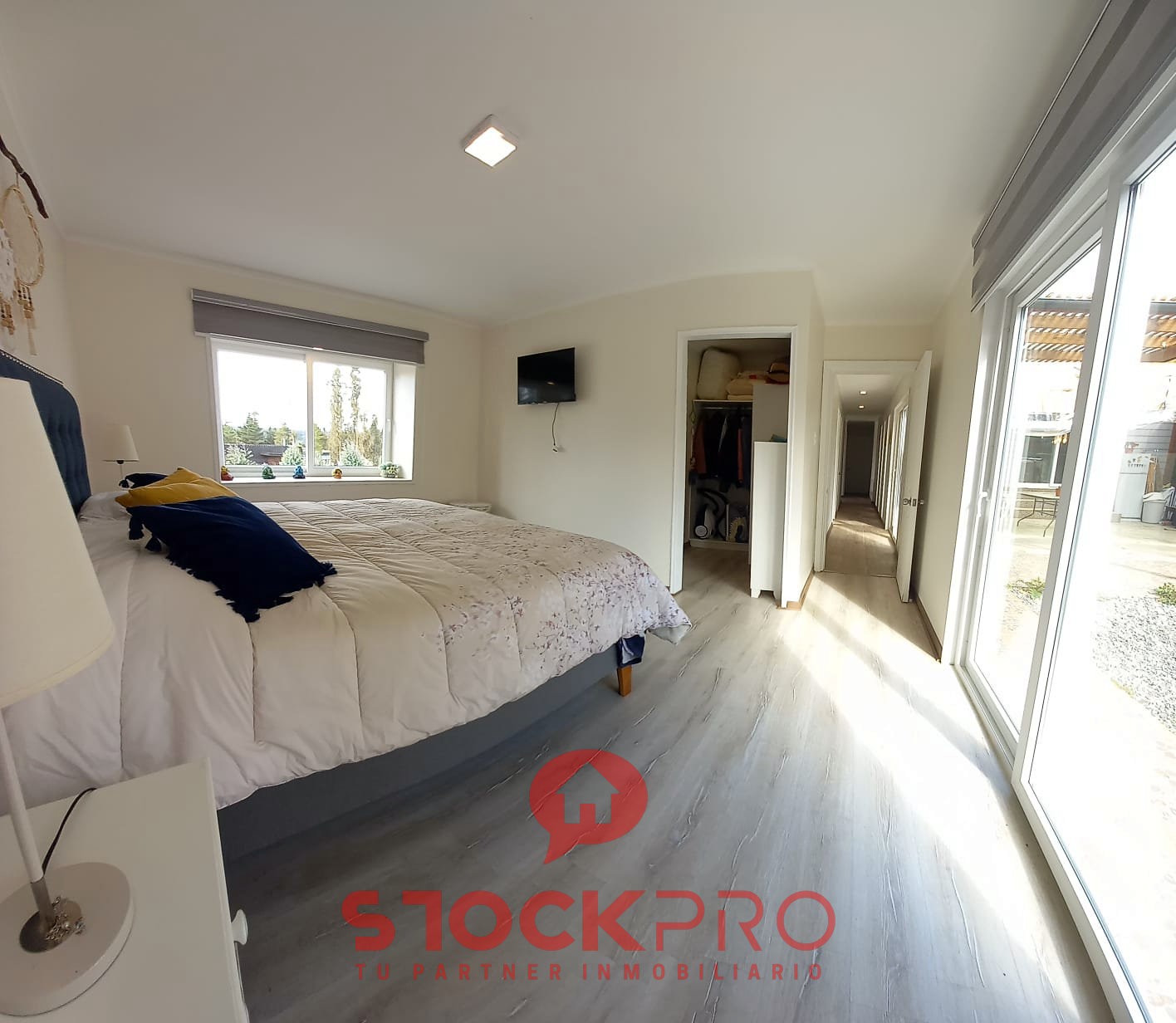 La casa dispone de 4 dormitorios más dos baños, principal en suite con walk in closet, dormitorios secundarios complementados con amplios closets que optimizan el espacio de almacenamiento. El exterior se destaca por un amplio jardín y patio que incluye una amplia terraza techada con quincho, perfecto para disfrutar de reuniones al aire libre. El condominio ofrece seguridad y áreas verdes, así como una cancha polideportiva que fomenta un estilo de vida activo. Además, la propiedad cuenta con servicios como agua corriente, luz, y aire acondicionado, garantizando comodidad durante todo el año.