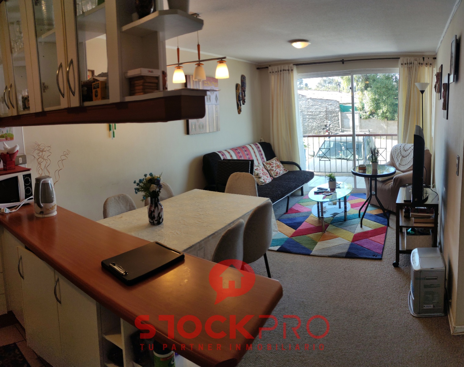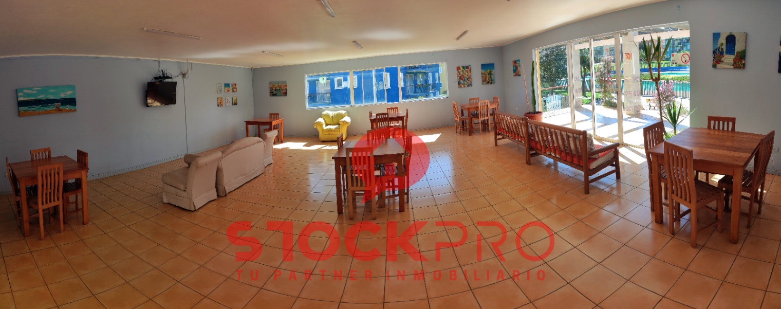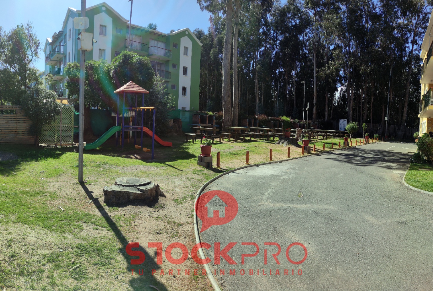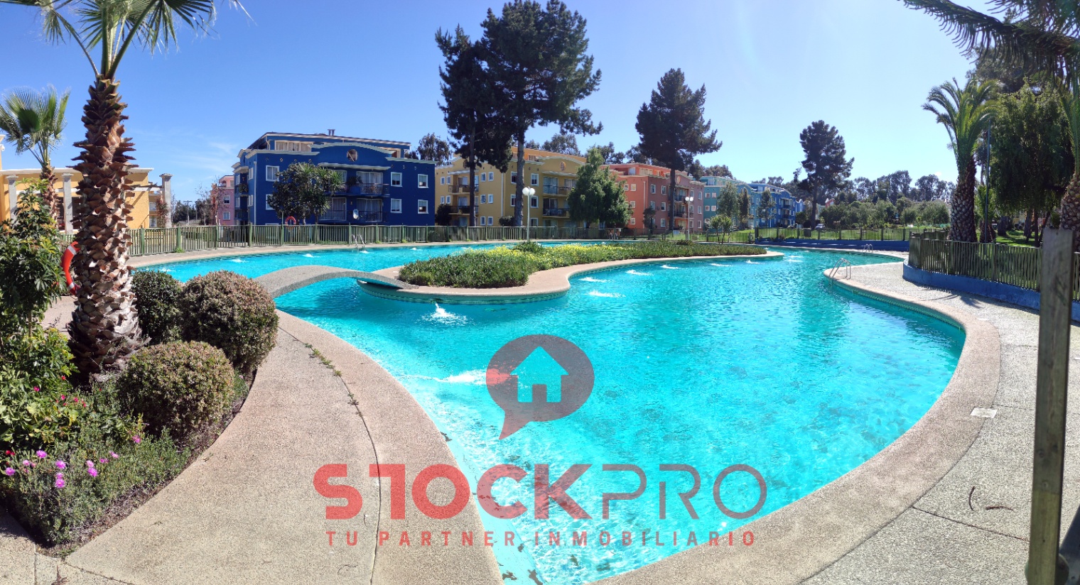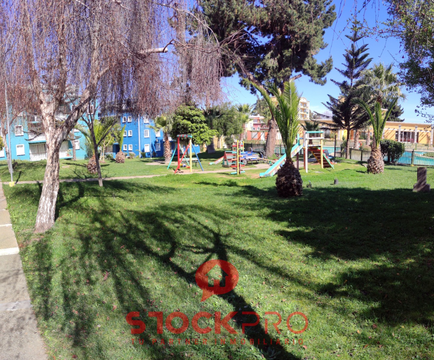 El entorno del departamento es ideal para familias, con áreas verdes, juegos infantiles y una cancha polideportiva que fomentan la actividad al aire libre. Los residentes también disfrutan de un Club House, salón de usos múltiples y piscina, creando un ambiente perfecto para el esparcimiento y la convivencia. La propiedad se encuentra en un barrio cerrado, lo que garantiza mayor seguridad y tranquilidad. Los gastos comunes son de CL$75.000, ofreciendo servicios como agua corriente, gas natural y alumbrado público, entre otros.
