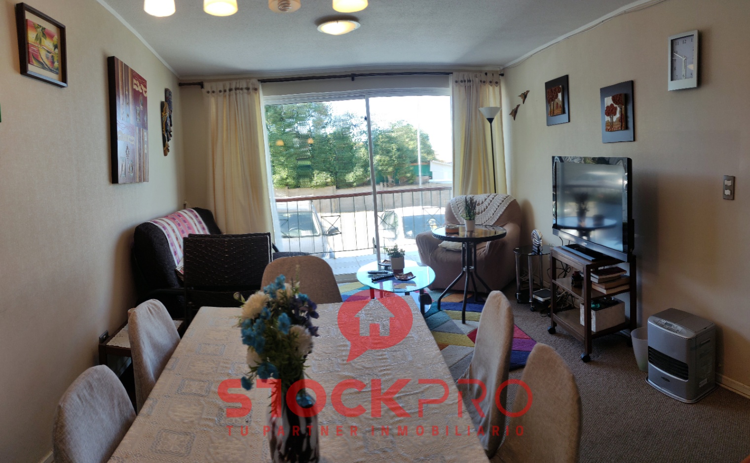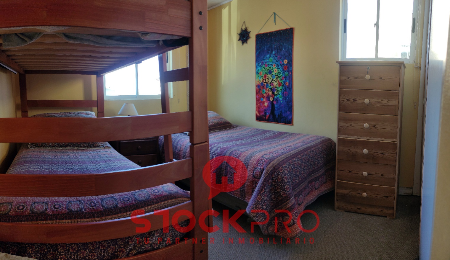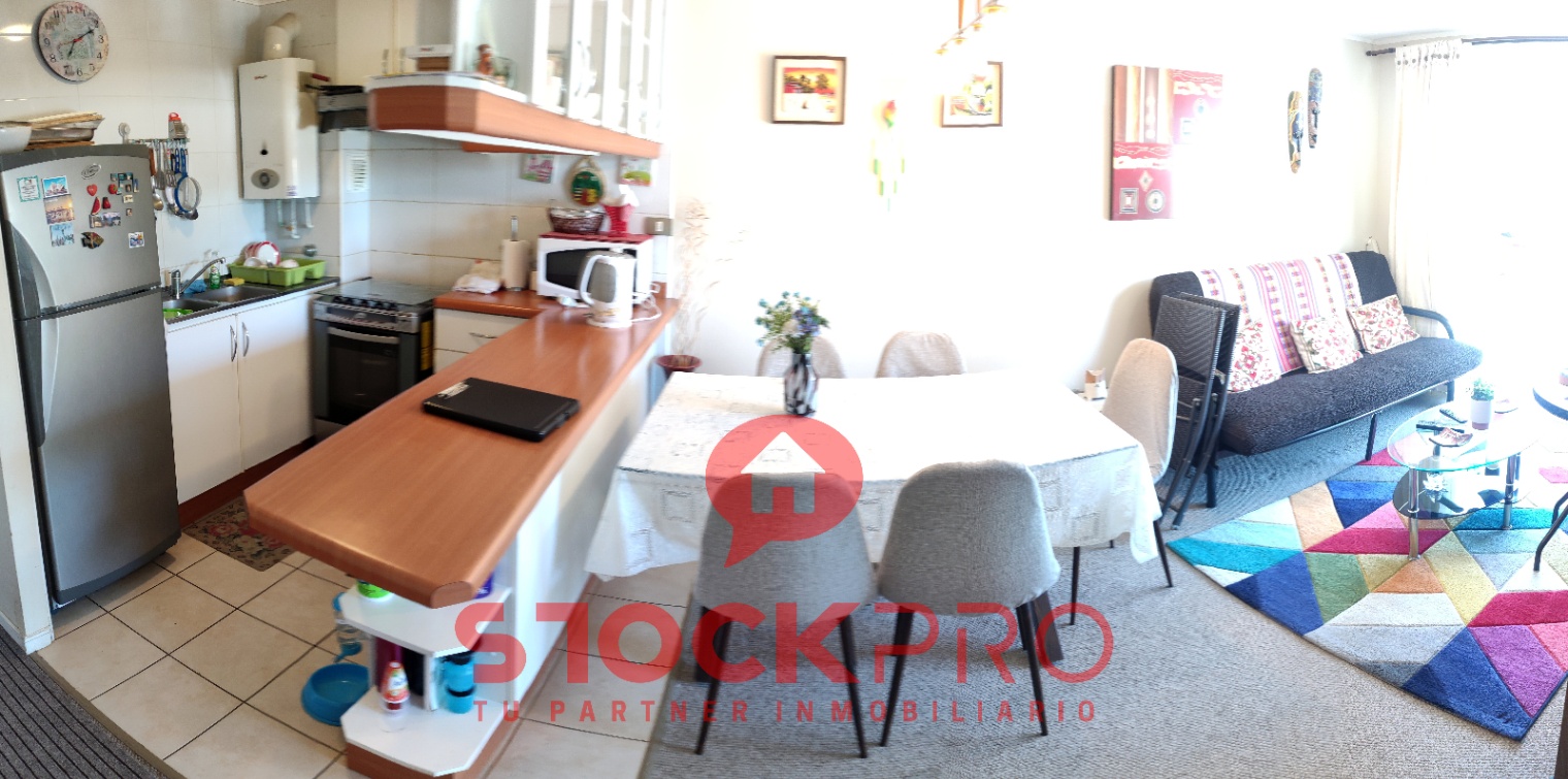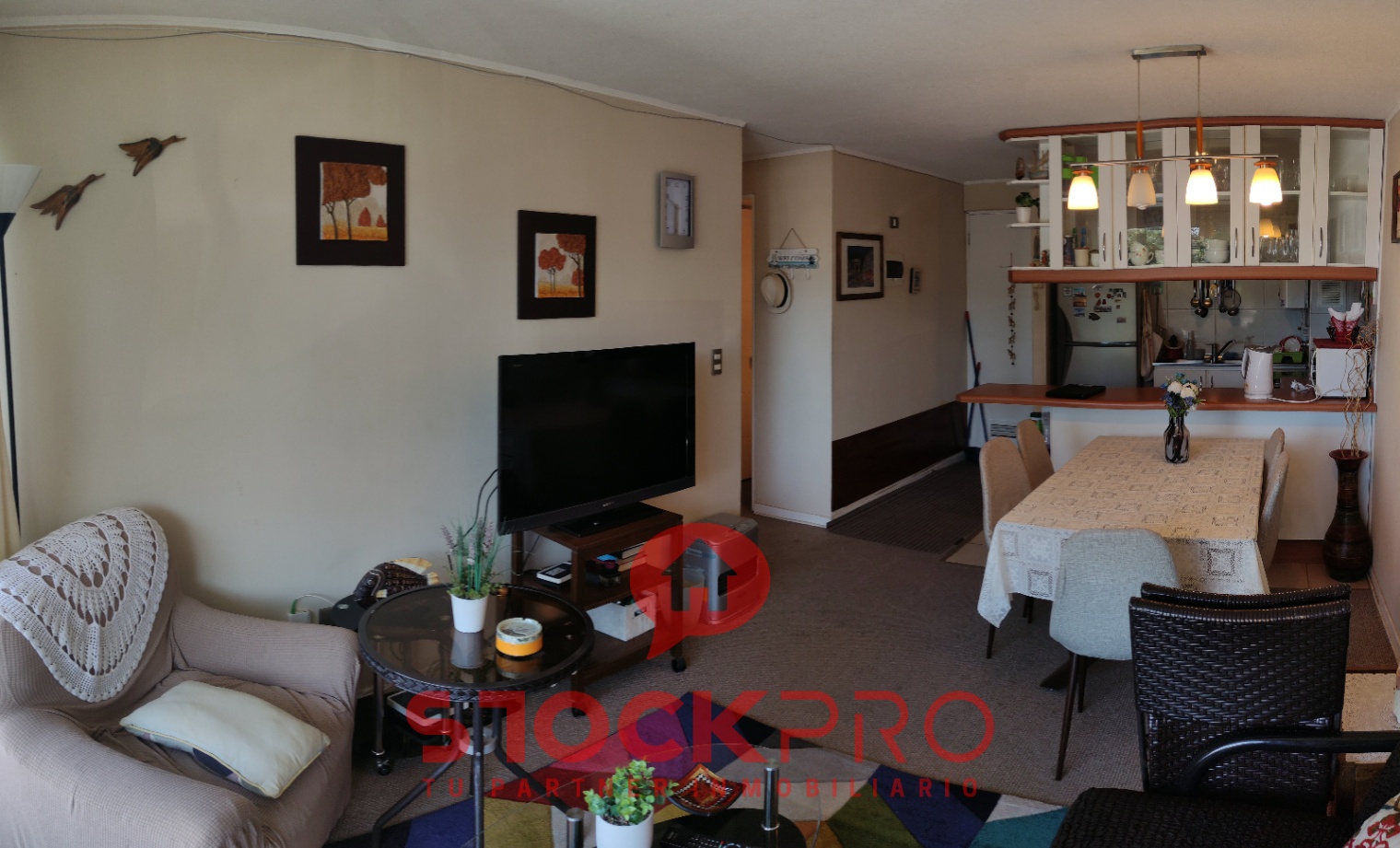 El entorno del departamento es ideal para familias, con áreas verdes, juegos infantiles y una cancha polideportiva que fomentan la actividad al aire libre. Los residentes también disfrutan de un Club House, salón de usos múltiples y piscina, creando un ambiente perfecto para el esparcimiento y la convivencia. La propiedad se encuentra en un barrio cerrado, lo que garantiza mayor seguridad y tranquilidad. Los gastos comunes son de CL$75.000, ofreciendo servicios como agua corriente, gas natural y alumbrado público, entre otros.