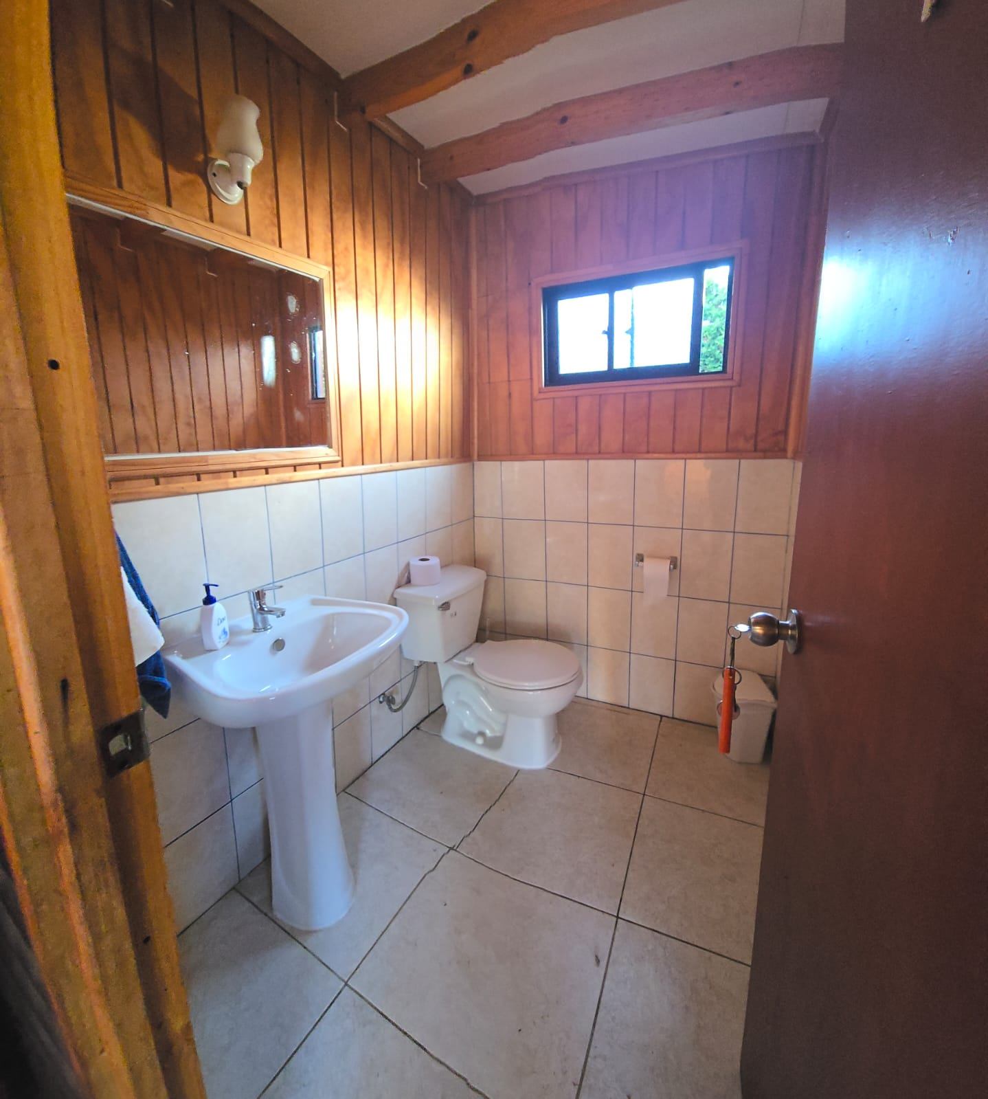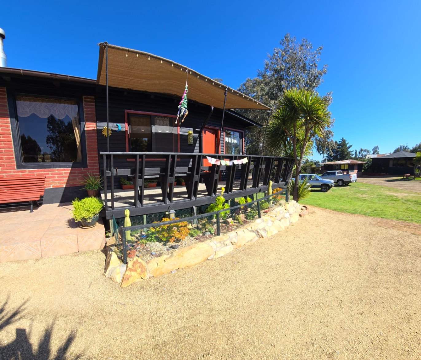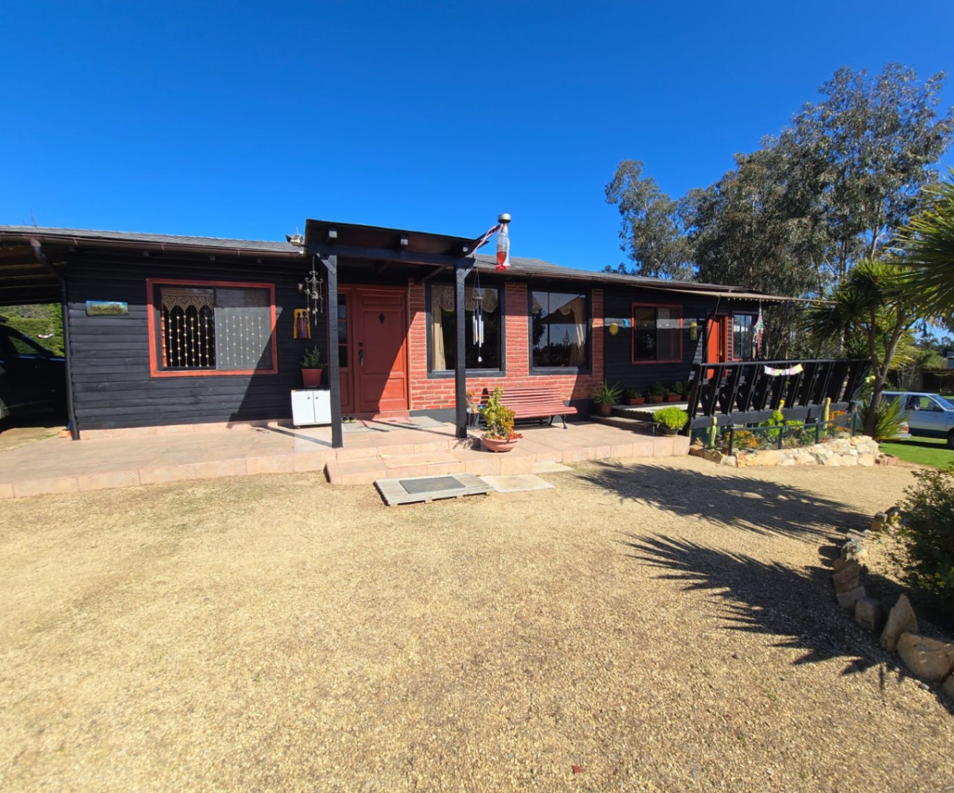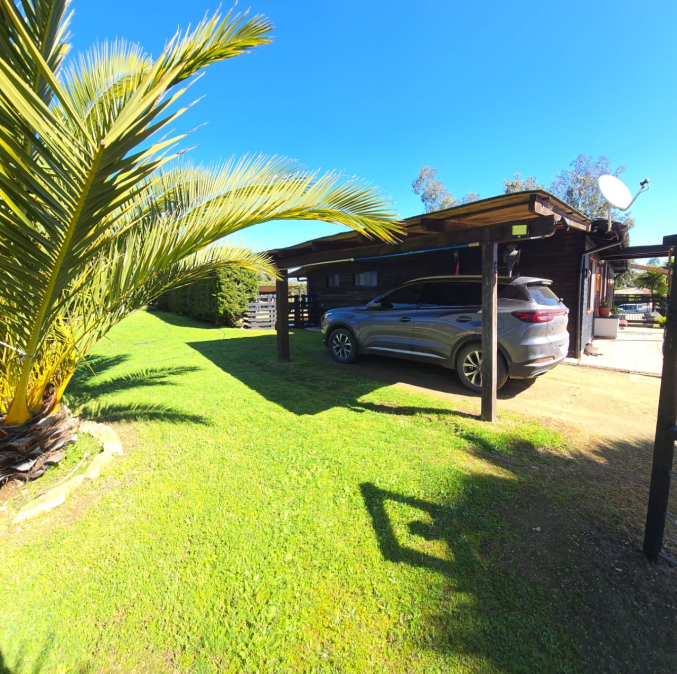 Casa Principal de 110 mts2 en madera, cimentada en radiel de hormigón, asilada, techo teja asfáltica, marco ventanas de aluminio. Distribuidas en 3 dorm amplios + 1 baño grande + cocina de concepto abierto más gran logia con salida a patio exterior. Amplio living comedor, taller con entrada independiente, terraza exterior techada y patio exclusivo con cerco verde.