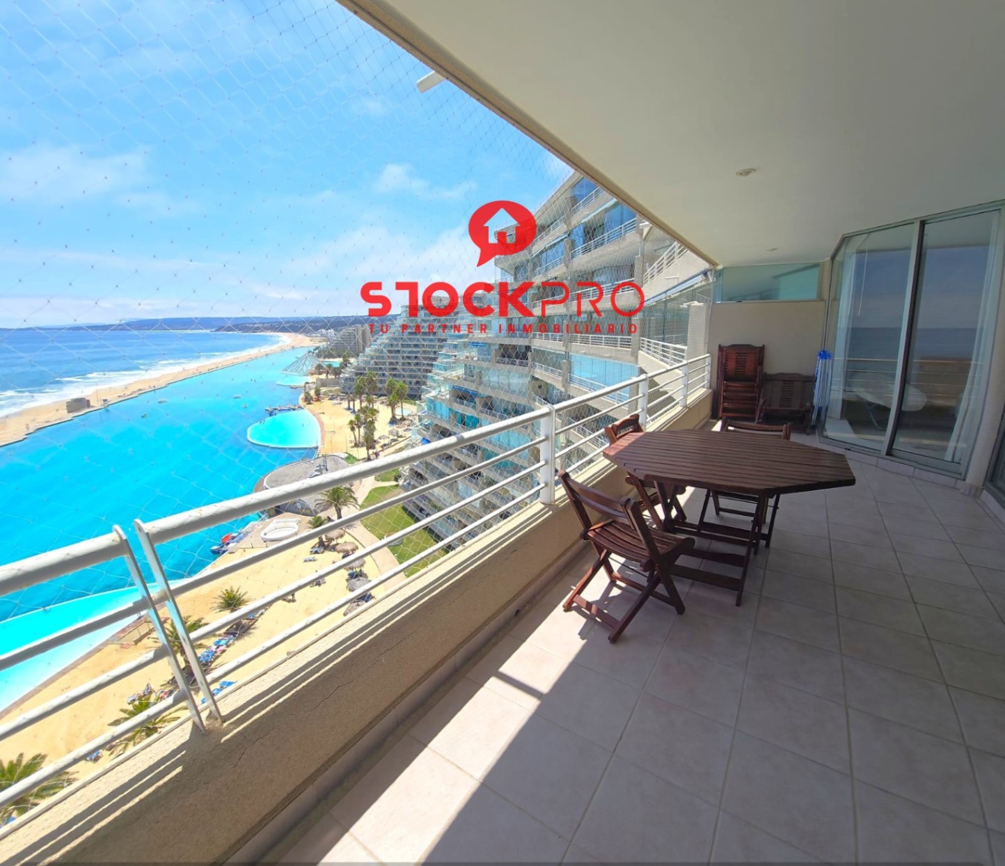 Exclusivo departamento frente al mar en San Alfonso del Mar, Algarrobo, ubicado en uno de los condominios más codiciados del litoral central. Este hermoso inmueble cuenta con una impresionante vista panorámica al océano, excelente orientación oeste y una luminosidad natural que inunda todos sus espacios. Con una superficie total de 109 m2 totales, el departamento posee terminaciones de alta calidad y se vende completamente amoblado, listo para disfrutar desde el primer día. Incluye un estacionamiento subterráneo y una bodega, garantizando la comodidad y el espacio adicional que necesitas.