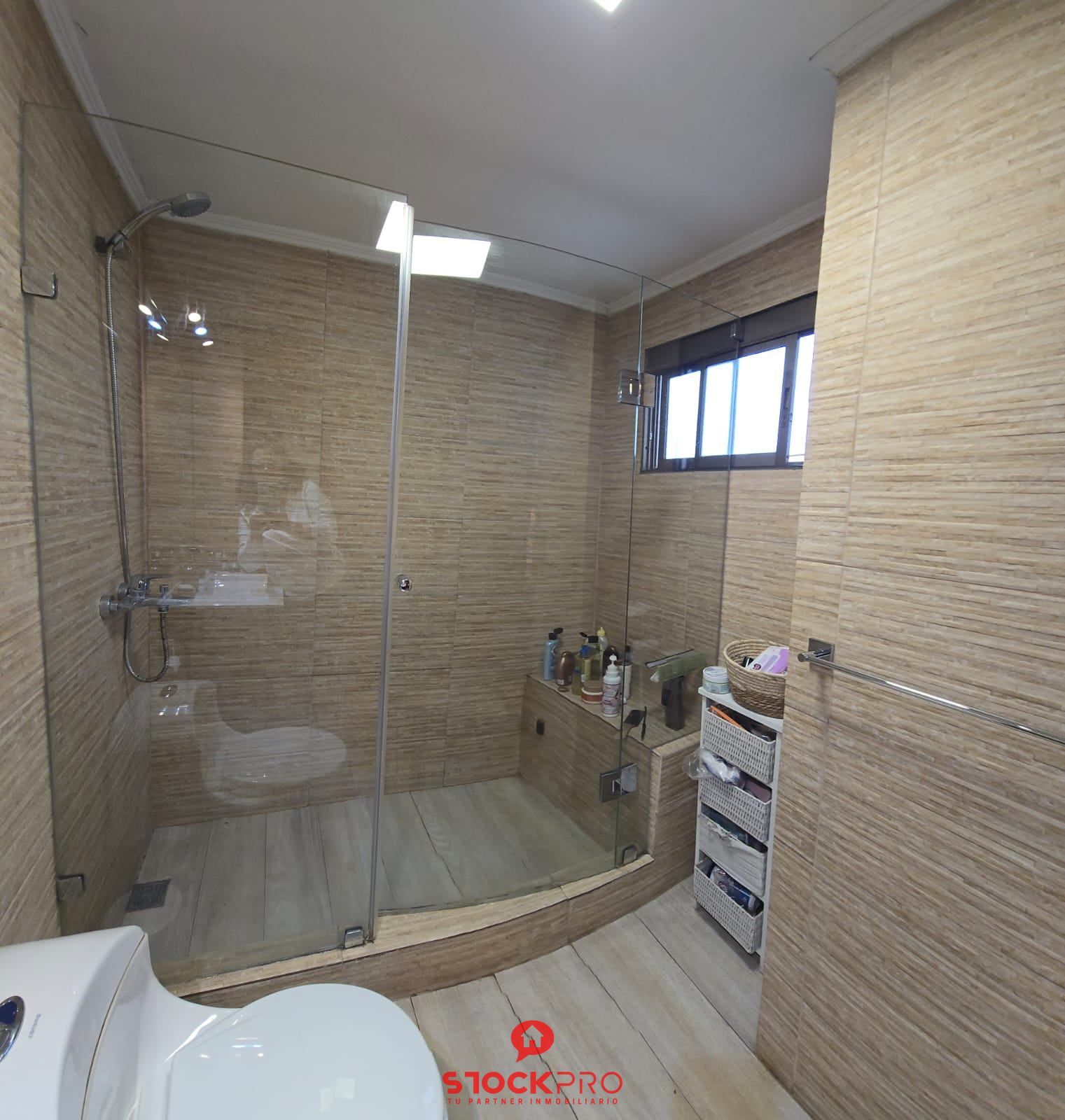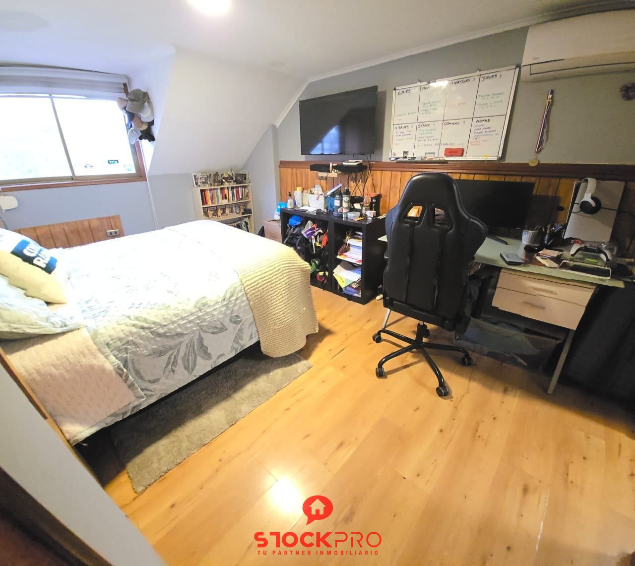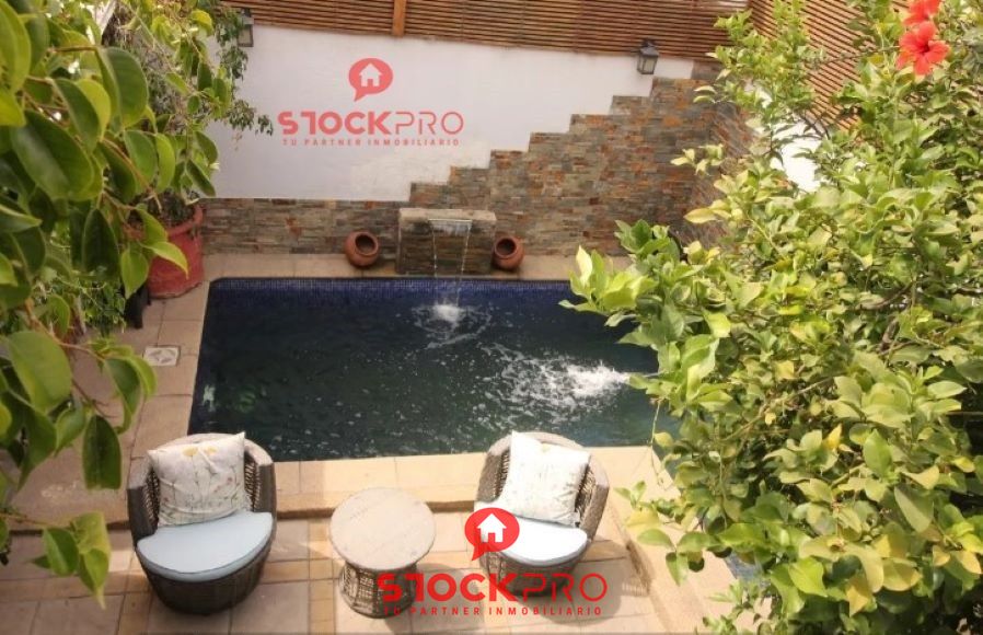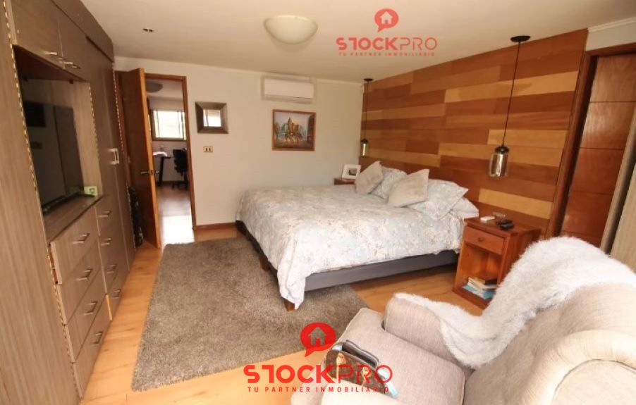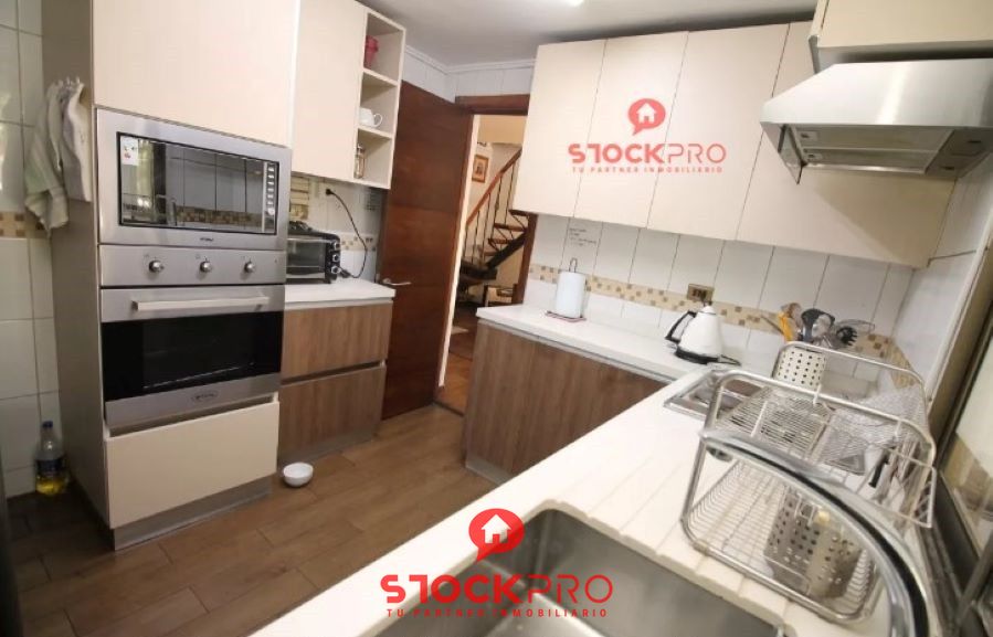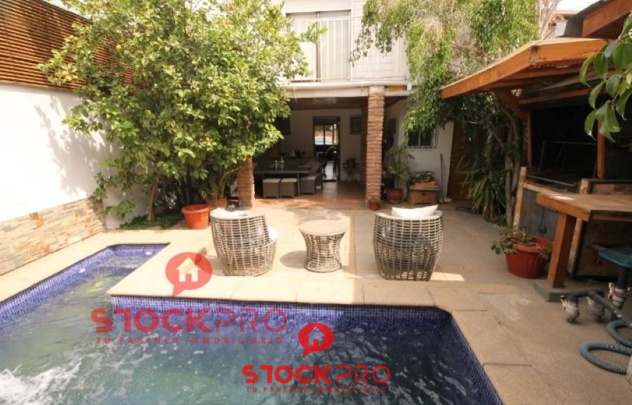 El primer piso destaca por sus puertas de seguridad en metal simil madera y ventanales en termopanel, lo que garantiza confort y seguridad. La cocina cuenta con mesada de granito blanco, encimera de vitrocerámica, horno convencional y horno microondas empotrado, además de estar conectada al patio posterior que alberga una práctica sala de lavado y despensa. En el exterior, se puede disfrutar de la piscina en el patio posterior, además de contar con una terraza ideal para reuniones familiares y una bodega exterior para mayor comodidad. La propiedad también dispone de un amplio baño de visitas en el primer piso, portón automático y estacionamiento para 2 vehÃculos, asà como espacio afuera para 2 vehÃculos de visita.